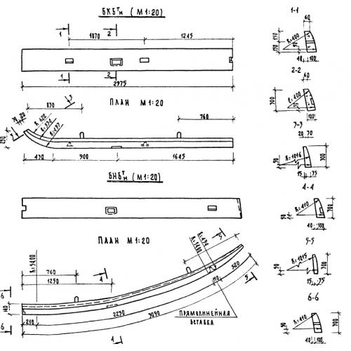 БКБ  брус железобетонный. Малые архитектурные формы и элементы благоустройства улиц, дорог, площадей по серии ТП 320-55.